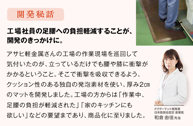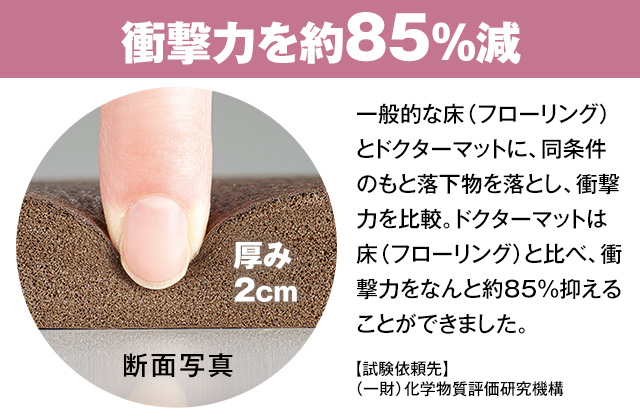 ※ドクターマットは本製品使用中の足・ひざ・腰への衝撃を減らすことを目的に、産業医監修のもと作られたマットです。医療機器ではございません。
